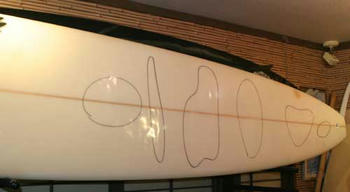 ノーズライダーなら修理後の重量を気にせずやれるのですが、この板はマニューバ重視の板なのでなるべく重くしたくありません。