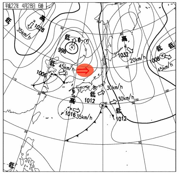昨日の06:00実況気圧配置