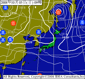 今週の予想気圧配置によると10月5日(日)に大陸からの高気圧の張り出しで北~北西の風がやや強まりそうですね。