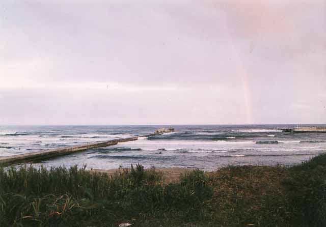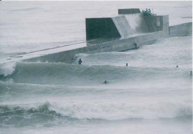 上の画像は「宮沢のヘリ」ですが、今年の5月に漁港のモデル事業工事は終了したそうです。入り口はそれまでの半分以上が防波堤でふさがれ、突堤の脇に置き去りにされたテトラポット、北ウネリによって割れたグーフィーは過去の波となってしまいました。
