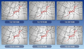 明日は北~北東の風になりやすい予想気圧配置です。(沿岸では一時的に南東になる可能性も!?)