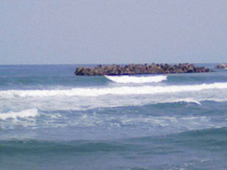 ある時は向浜にはかすかな北ウネリのみで、宮沢に向ってみたらこんな波でした。
