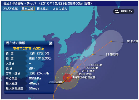 台風は本州に接近し上陸する可能性もあり、人的被害が出そうで心配なコースです。遠い南海上から送られてくるウネリなら、そんなことは考えずに喜べるのですが・・