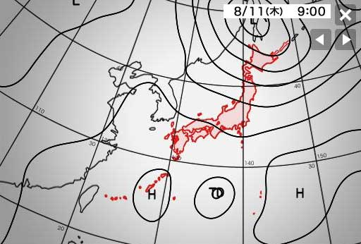 この気圧配置はどちらかというと南西というよりは西よりの風。