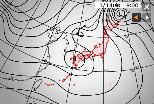 明日は等圧線が開いて北よりの風も弱まって、北東~南東の風に振れるスポットもありそうです。