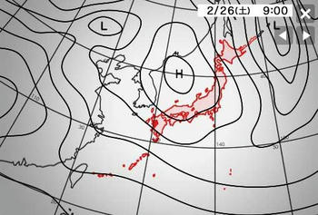 明日は高気圧の中心が南に下がり北側のヘリが上空にやってきます。明日は気温の上昇とともに風は時計回りにシフトしそうです。