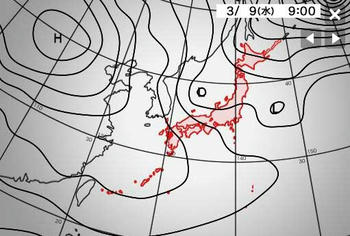 日本海に低気圧が発生し等圧線が開きます。