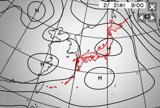 高気圧の北側のヘリが来るので西~南西が入りやすい気圧配置です。
