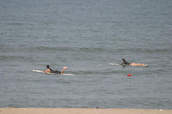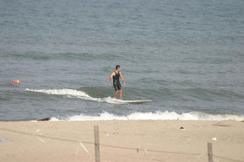 南西の風で少しサイズアップしてスネ~ヒザのショアブレイク。