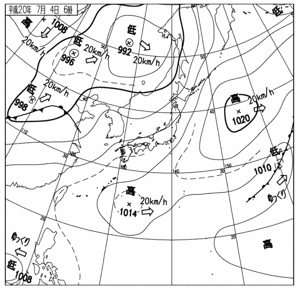 今朝6時の気圧配置