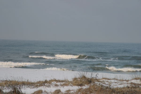 沿岸はオフショア、サイズアップしたウネリは沖の西風でヨレヨレ