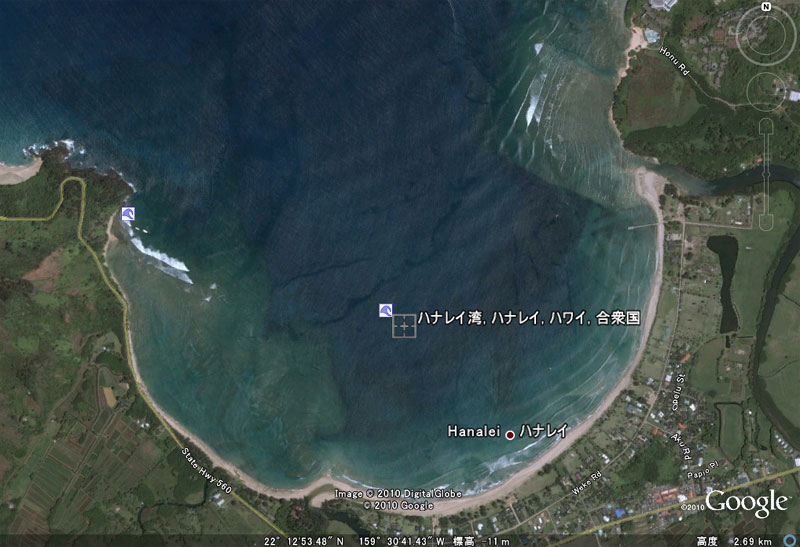 hanalei bauの左右にはそれぞれポイントブレイクが!