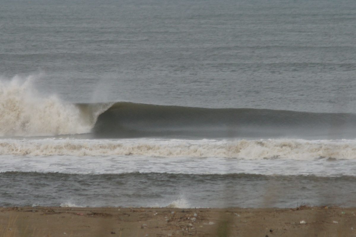 昼前に北西が入ってウネリはパワーダウン。後にもう一度オフショアになりましたが面は良くなったものの更にサイズダウンしてました。(15:30頃)