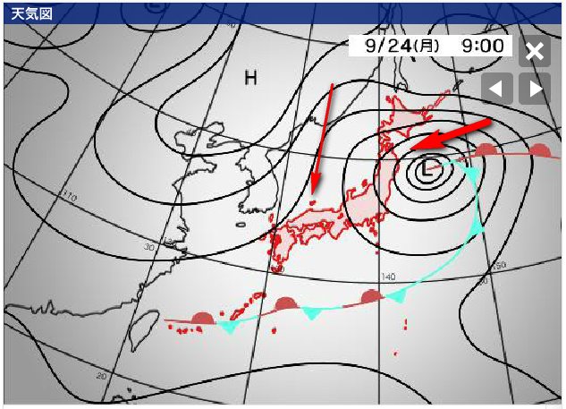 全国的に北~北東の風が吹く気圧配置で今日よりは入ってきそうな感じ・・!?