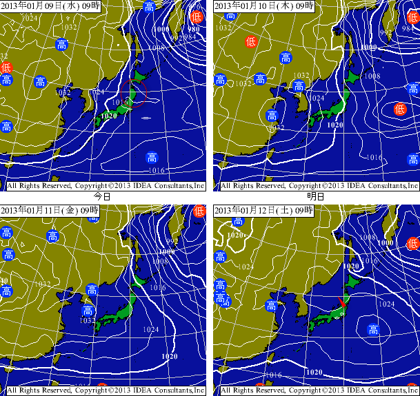 気圧の谷が抜ける今夜から冬型が戻って明日いっぱい強い北西の風ですが、土曜日には高気圧の西側のヘリがやってきてオフショアになりそう!