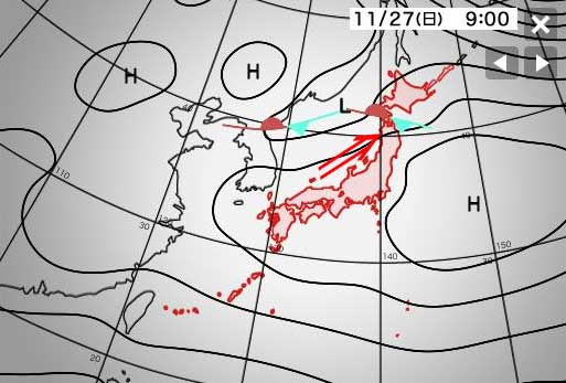 明日の気圧配置は南西の風が徐々に強まりそうですが、朝のうちは沿岸で南東オフの可能性もありますね。