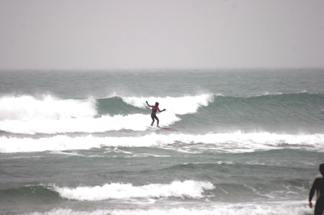 沖に風が入り始めてたのとビギナー連れだったのでショーケン他4名が入るのを横目に移動。