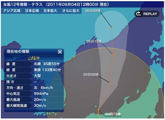 40°線を越えて消滅したのが午後2時頃。