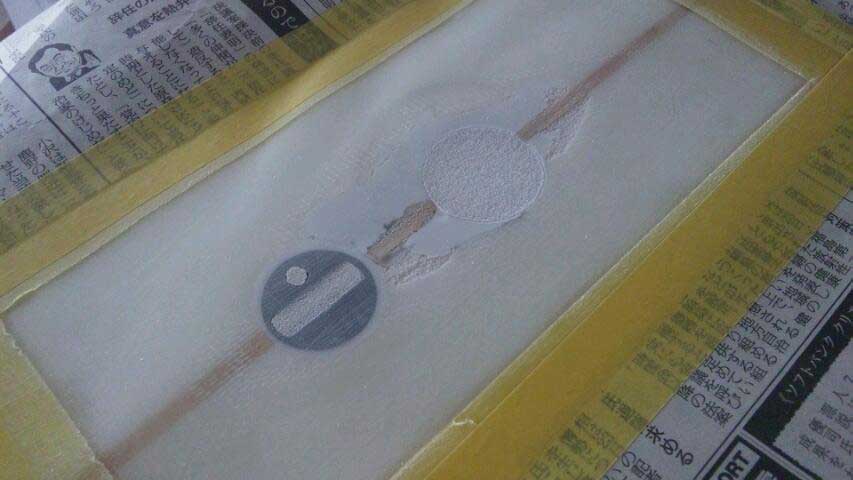 剥離した場合リペアしても次から次と剥離が進む事も。剥離面積より少し大きめに剥ぎました。