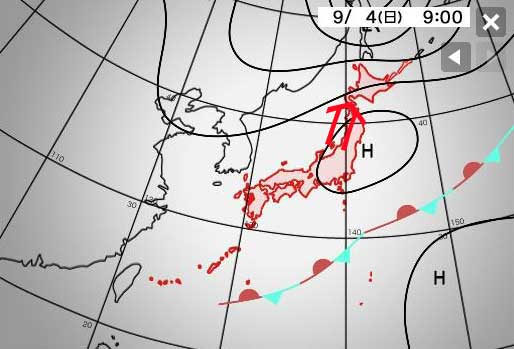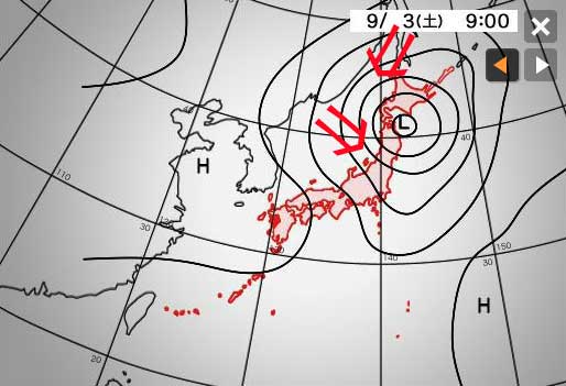 台風12号が太平洋側を北東進して北~北西の風が強まり