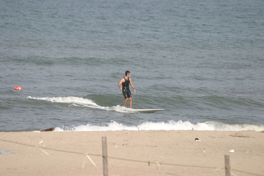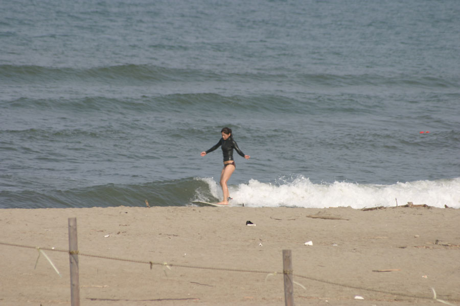 南西の風で少しサイズアップしてスネ~ヒザのショアブレイク。