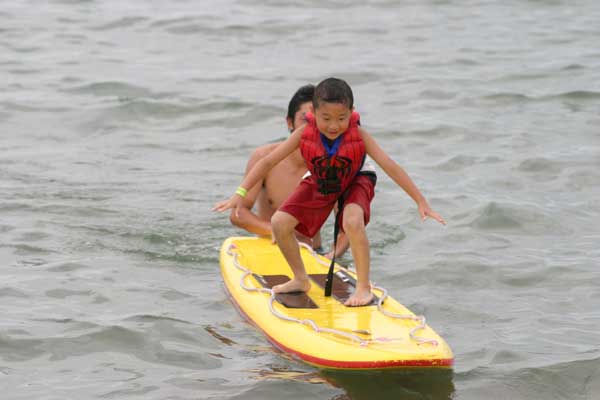 サーフィン、スタンドアップパドルともに午前と午後の体験の定員は満員でした。
