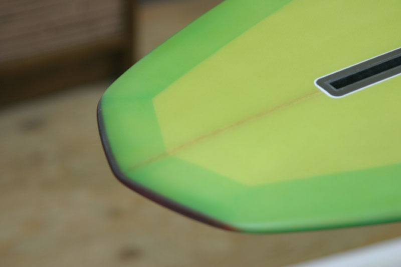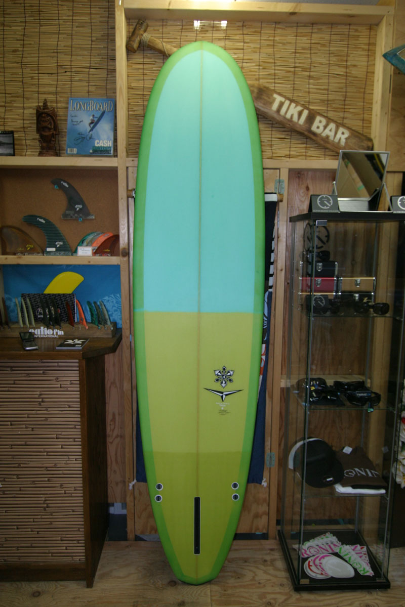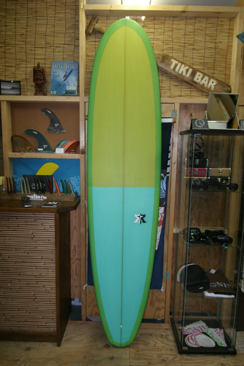 今風に言うならミニロング。乗り手の体格によってはファンボードにもなるし、小柄な女性にとってはロングボードにもなり得ます。アウトライン、ロッカー、レイルのフォイルなどの調整でマニューバ重視かノーズ重視を選べます。